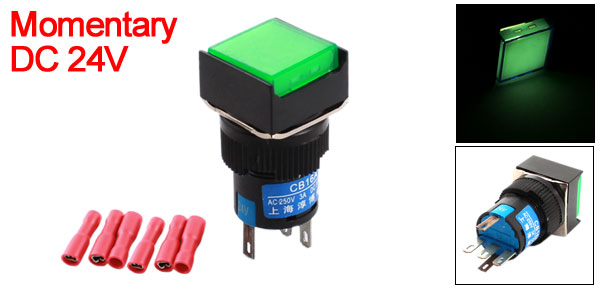 DC 24V Green Lamp 16mm SPDT Momentary Push Button Switch + 5pcs Crimp Terminals