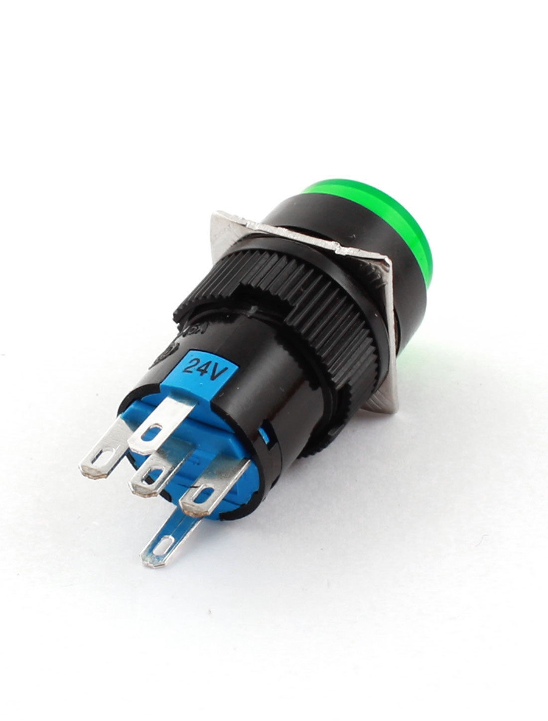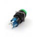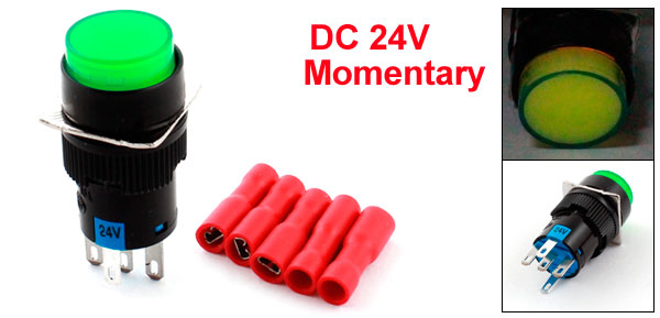 DC 24V Green Lamp SPDT Momentary Round Push Button Switch w Female Connector