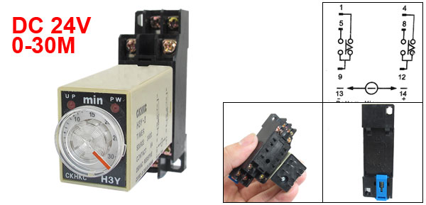 DC 24V H3Y-2 0-30 Minutes DPDT 8 Pins Power on Time Delay Relay w Socket