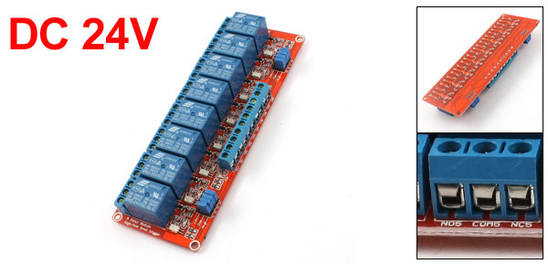 Product Name Opto-isolator 8-Channel Power Relay Module Coil Voltage DC 24V Working Type High/Low Level Trigger Total Size 137 x 55 x 17mm/ 5.4" x 2.2" x 0.67"(L*W*H) Material Plastic, Electronic Part Net Weight 115g Package 1 x Opto-isolator 8-Channel Power Relay Module - Reviews
