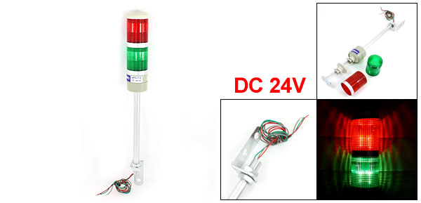 Product Name Industrial Tower Alarm Light Rated Voltage DC 24V Lighting Color Red, Green Mounting Hole Diameter 1.6cm/0.63", 1.2cm/0.47" Light Size (Approx.) 5 x 18.2cm / 2" x 7.2" (D * L) Bracket Size (Approx.) 6.8 x 2.6 x 3.2cm / 2.7" x 1" x 1.3" (L * W *H) Hose Size (Approx.) 1 x 26cm / 0.4" x 10.2" (D * L) Cable Length 84cm/33.1" Shell Color Red, Green, Silver Tone, Gray Net Weight 372g Package Content 1 x Industrial Tower Alarm Light