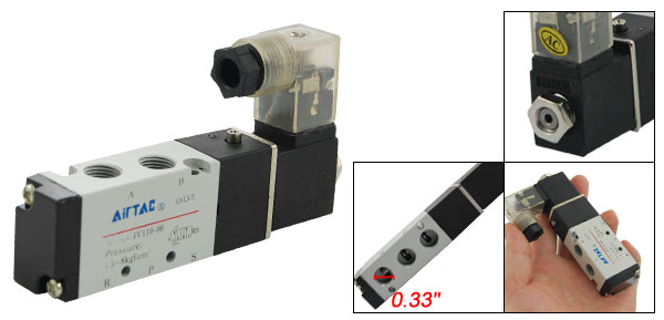 Product Name Pneumatic Solenoid Valve Model 4V110-06 Type 2 Position 5 Way Operation Type Inside Pilot Type Material Metal, Plastic Working Voltage DC24V Operating Pressure 1.5-8kgf/cm2 Port Diameter 0.85cm / 0.33" Total Size (Approx.) 9.3 x 5 x 1.2cm / 3.66" x 2" x 0.47" (L * W * T) Color Siver Tone, Black Net Weight 115g Package Content 1 x Pneumatic Solenoid Valve - Reviews