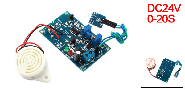 Product Name Delay Alarm Module Working Voltage DC24V Delay Time 0-20S(0-200S Without Wire) Buzzer Type Piezo Buzzer (Self-drive type) Fixing Hole Dia 3mm/0.12" Fixing Hole Center Distance 58 x 33mm/2.3" x 1.3"(L*W) Total Size 64 x 39 x 12mm/2.5" x 1.6" x 0.47"(L*W*H) Wire Length 20cm/8" Materials PCB Main Color Blue Net Weight 24g Package Content 1 x Delay Alarm Module