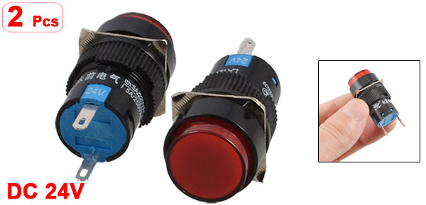 DC 24V Panel Mount Red Indicator Abnormal Signal Light Pilot Lamp 2 Pcs