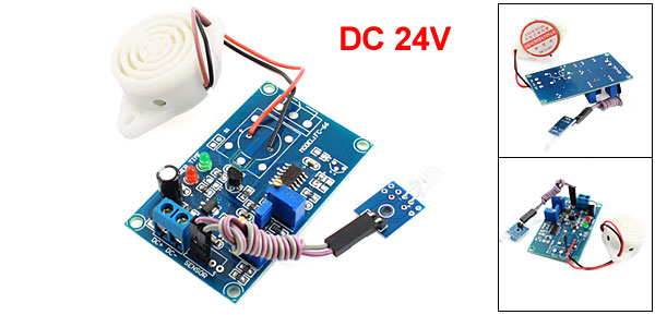Product Name Delay Alarm Module Working Voltage DC24V Fixing Hole Dia 3mm/0.12" Fixing Hole Center Distance 58 x 33mm/2.3" x 1.3"(L*W) Total Size 64 x 39 x 12mm/2.5" x 1.6" x 0.47"(L*W*H) Materials PCB Main Color Blue Net Weight 23g Package Content 1 x Delay Alarm Module