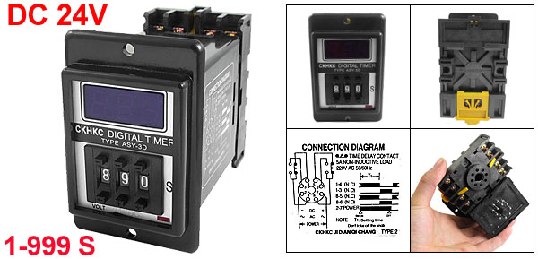 DC 24V Power on Digital Time Relay 1-999 Seconds 999S 8 Pins ASY-3D w Socket