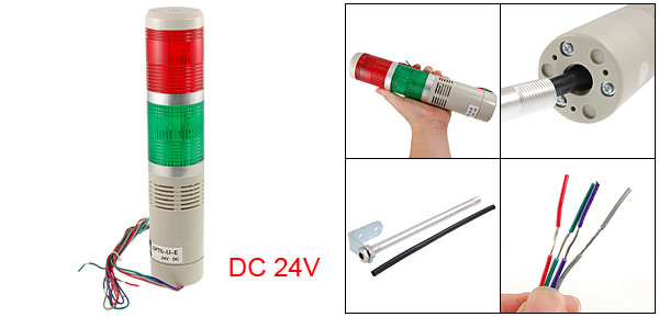 DC 24V Red Green LED Light Buzzer Industrial Warning Signal Tower Lamp 90dB