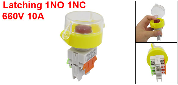 Product Name Pushbutton Switch Action Type Latching Button Type High Flat Button Contact Type 1NO 1NC(DPST) Ui(AC-15) 660V Ith(AC-15) 10A Lamp Voltage 24V Terminals Quantity 6 Screw Terminals Thread Diameter 24mm/0.94" Button Diameter 24mm/0.94" Protection Cover Diameter 55mm/2.17" Suitable Board(Max.) 5mm/ 0.197"(Adjustable) Overall Size 73 x 55 x 98mm / 2.87" x 1.89" x 3.86" (L*W*H) Material Plastic, Metal, Electric Parts Lamp Color Red Color Gray, Yellow, Red Net Weight 74g Package Content 1 x Pushbutton Switch - Reviews