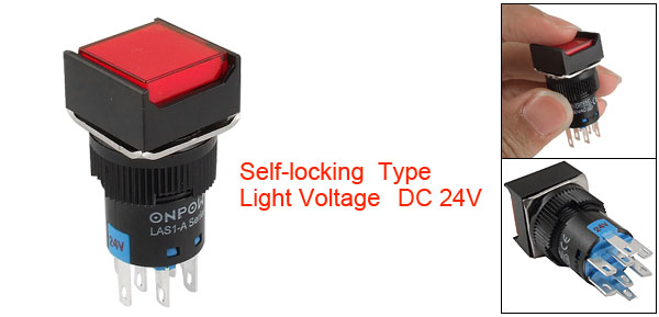 DC 24V Red Light Panel Mounting Self-locking Contact Push Button Swtich