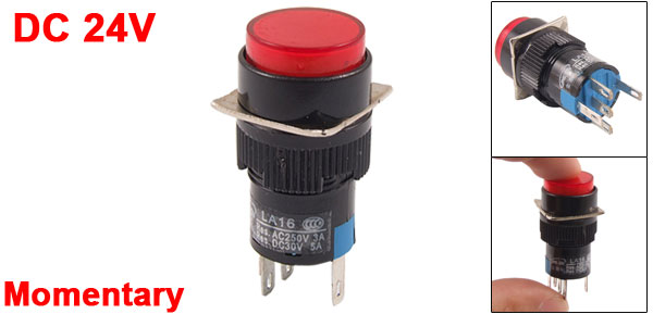 DC 24V Red Neon Light Momentary Push Button Switch AC 3A/250V