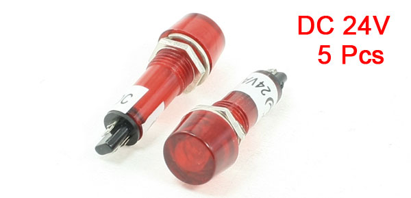DC 24V Red Round Cap 2 Terminal Signal Lamps Indicator Lights 5 Pcs