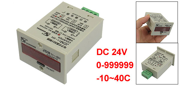 Product Name Digital Counter Model JDM11-6H Digit Display 6 Display Type 0.36" LED Display Voltage DC 24V Count Signal No Voltage Count Range 0-999999 Count Speed 10/Second Environment Temperature -10~40C Power <=2W Mount Hole Diameter 3.5mm/0.14" Mounting Size 5 x 2.6cm/2" x 1"(L*W) Panel Size 5.6 x 4cm/ 2.2'' x 1.6''(L*W) Total Size 5.6 x 4 x 8.8cm/2.2'' x 1.6'' x 3.5'' (L*W*H) External Material Plastic Color Gray Net Weight 58g Package Content 1 x Digital Counter - Reviews