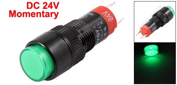 DC 24V SPST 2 Pin Soldering Momentary Green Indicator Press Push Button Switch