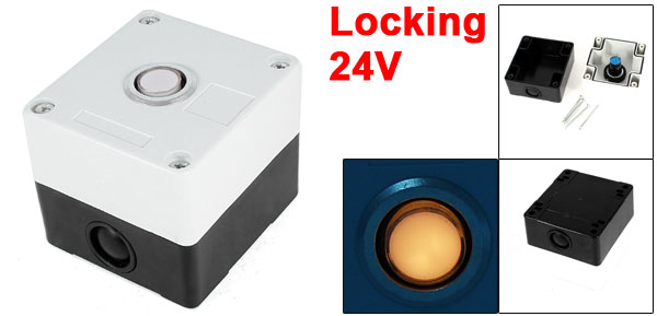 DC 24V Warm White Light SPDT 5 Pin Soldering Latching Push Button Station Box