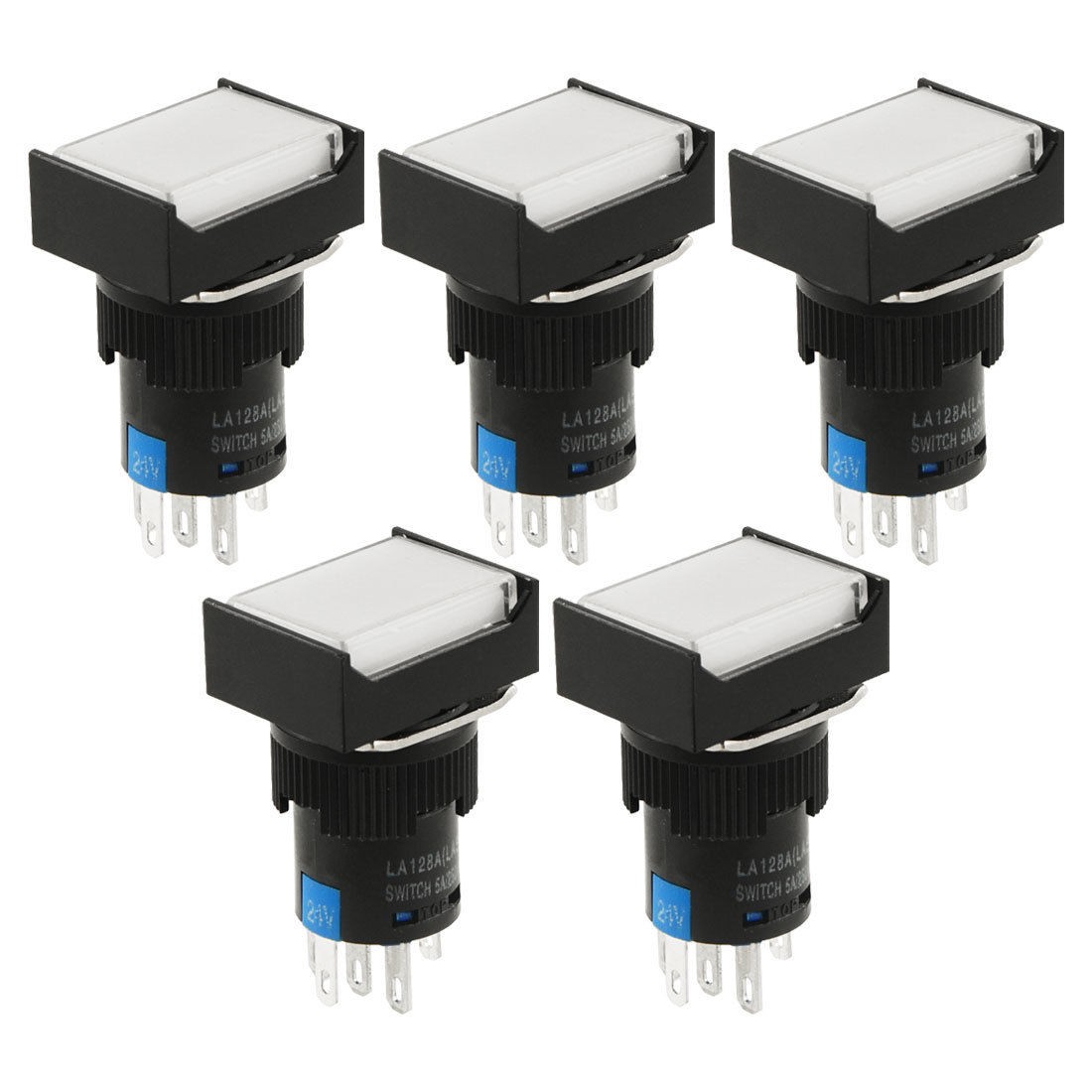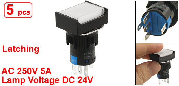 DC 24V White Lamp 1NO 1NC Latching Rectangular Push Button Switch 5 Pcs