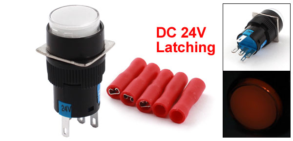 DC 24V White Light 16mm SPDT Self Locking Round Pushbutton Switch + Connector