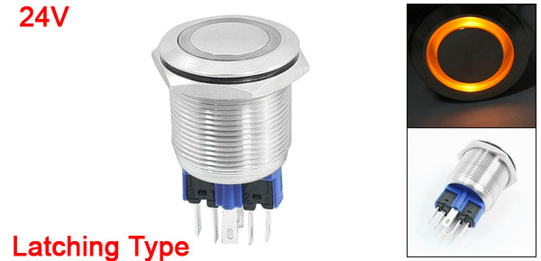 Item Name Push Button Switch Operation Type Latching Type LED Type Ring-illuminated LED Contact DPDT Pin Number 6 Head Design Flat Head Lamp Voltage 24V Switch Rating 250VAC, 5A LED Color Yellow Thread Diameter 22mm/0.87" Total Size 43 x 25mm/1.7" x 1"(L*Max.W) Material Stainless Steel , Electric Parts Housing Color Silver Tone Weight 26g Package Content 1 x Push Button Switch - Reviews