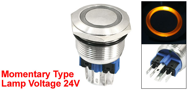 Brand Assisi Terminal Number 6 Country of Manufacture CHINA Material Stainless Steel Lamp Type LED Total Size 38 x 25mm/1.5" x 1"(L*Max.W) Product Name Push Button Switch Net Weight 26g Mounting Size 22mm Pole and Throw DPST Package Content 1 x Push Button Switch Light Voltage DC24V Mounting Type Nut Mount LED Lamp Color Yellow Switch Housing Material Stainless Steel Switch Rating AC 250V 5A Oeperation Type Momentary - Reviews