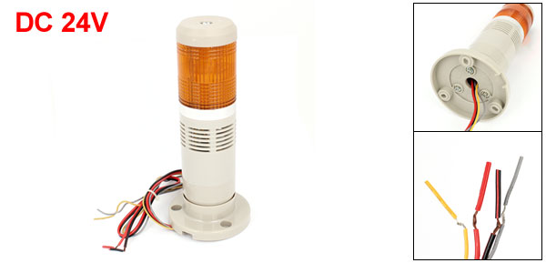 DetailsDC 24V Yellow LED Flash Industry Signal Tower Alarm Light Lamp  Product Name Industrial Signal Light Buzzer NO Light Type LED Flash Yes Rated Voltage DC 24V Light Color Yellow Material ABS, Electronic Parts Size 19 x 8cm/ 7.5" x 3.1"(H*D) Cable Length 55cm/21.7" Shell Color Yellow, Gray Net Weight 234g Package Content 1 x Industrial Signal Light