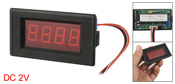 Product Name 3 1/2 LED Volt Meter Power Supply DC 2V Display Red LED Display Accuracy 0.2% Display Range 0±199.9mV / 0±1.999V Display Word High LED 0.5" / 0.56" Operation Temp 0 - ± 50 Degree Operation Humi </= 85%PH Zero Seting Auto Polarity Auto Total Size 79.5 x 43 x 25.5mm(L*W*T) Size of Mounting Hole 75 x 39.5mm Cable Total Length 25.4cm / 10" Casing Material Plastic Color As Picture Show Weight 49.5g Package Content 1 x 3 1/2 LED Volt Meter 1 x 5-Pin Pigtail Connection Cable - Reviews