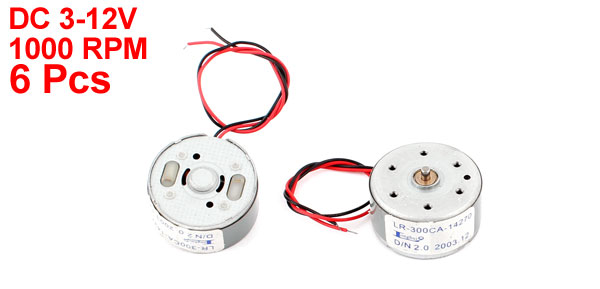 DC 3-12V 1000 RPM 25mm Diameter Wire Leads Magnetic Gear Motor 6Pcs