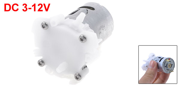 DetailsDC 3-12V Water Pumping Electric Micro Pump Motor RS-360SH  Product Name Micro Pump Motor Model RS-360SH Rated Voltage DC 3-12V Total Length 65 mm / 2.5" Motor Size 27 x 32 mm / 1" x 1.2" (D*L) Pump Head Size 44 x 37 x 20 mm / 1.7" x 1.4" x 0.8" (L*W*H) Water Outlet Diameter 4 mm / 0.16" Main Color Silver Tone, White Material Metal, Plastic Net Weight 70g Package 1 x Micro Pump Motor