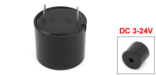 Product Name Piezo Buzzer Sounder Voltage DC 3-24V Type Continuous Sound Total Size(Pin Not Included) 23 x 20mm/ 0.9" x 0.8"(D*H) Pin Distance 15mm/ 0.6" Pin Size 0.8 x 8mm/ 0.03" x 0.32" Materials Plastic, Metal Main Color Balck Total Weight 6g Package Content 1 x Piezo Buzzer Sounder
