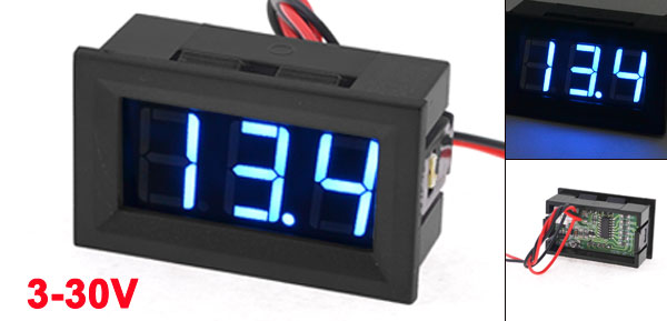 DC 3-30V 3 Digits Blue LED Panel Digital Display Voltage Meter Voltmeter