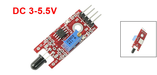 Product Name Flame Detection Sensor Module Fit for for Arduino Working Voltage 3-5.5V DC Total Size 5 x 1.5 x 1.5cm/2" x 0.59"x 0.59"(L*W*H) Materials PCB Net Weight 4g Package Content 1 x Flame Detection Sensor Module