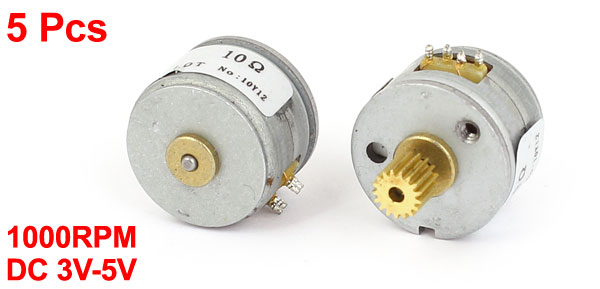 DC 3-5V 2 Phase 4 Wire 15mm Dia Stepper Motor Step Angle 18 Deg. Gear 5pcs