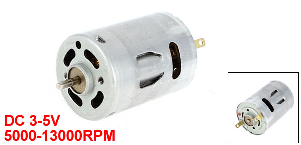 Working Voltage DC3-5V Shaft Size 2.3mm/ 0.9" Body Size 37 x 28mm/ 1.5" x 1.1"(L*D) Main Color Silver Tone Material Metal Weight 75g Package 1 x Micro DC Motor - Reviews
