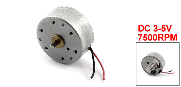 Brand DMiotech Net Weight 15g Total Length 15.5mm/0.6" Speed 7500RPM Country of Manufacture CHINA Package Content 1 x DC Motor Voltage DC 3-5V Shaft Size 2 x 4.5mm/0.08" x 0.18"(D*L) Material Metal, Electric Parts Wire Length 2cm/0.8" Body Size 10 x 24mm/0.4" x 0.94"(D*L) - Reviews