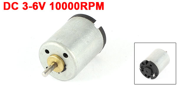 Product Name DC Micro Motor Rated Voltage DC 3-6V Output Speed 10000RPM Shaft Size 1.4 x 5mm / 0.055" x 0.2"(D*L) Body Size(Approx.) 12 x 15mm/ 0.47" x 0.59" (D*H) Material Plastic,Metal, Electronic Parts Color Silver Tone,Black Weight 6g Package Content 1 x DC Micro Motor - Reviews