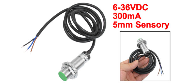 Product Name Inductive Proximity Switch Model LJ18A3-5-Z/BX Output Type NPN NO 3 Wires Working Voltage 6-36VDC Output Current 300mA Detecting Distance 5mm Head Dia. 16.5mm / 0.65" Mounting Thread Dia. 18mm / 0.7" Body Size(Approx) 5.8 x 1.8cm / 2.3" x 0.7" (L*D Max) Cable Length(Approx) 1.15M / 4Ft External Material Plastic Main Color Green, Silver Tone, Black Weight 86g Package Content 1 x Inductive Proximity Switch - Reviews