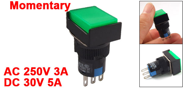 Mounting Thread Diameter 15mm / 0.59" Pin Pitch 5.2mm/ 0.204" Button Size 21 x 15mm/ 0.8" x 0.6"(L*W) Terminals 3 Overall Size 23 x 17 x 40mm / 0.9" x 0.7" x 1.6" (L*W*H) Material Plastic, Electronic Parts Color Black, Green Weight 8g Package Content 1 x Push Button Switch - Reviews