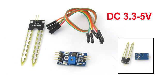 Product Name Soil Moisture Sensor Module Input DC 3.3-5V Fixing Hole Dia 3.4mm/0.13" Fixing Hole Center Distance 15mm/0.6" Fork Part Size 64 x 19mm /2.5" x 0.75"(L*W) PCB Board Size 39 x 15 x 6mm/1.6" x 0.6" x 0.24"(L*W*H) Jump Wire Length 21cm/8.3" Housing Material Plastic Color Blue, Black Weight 9g Package Content 1 x Soil Moisture Sensor Module - Reviews