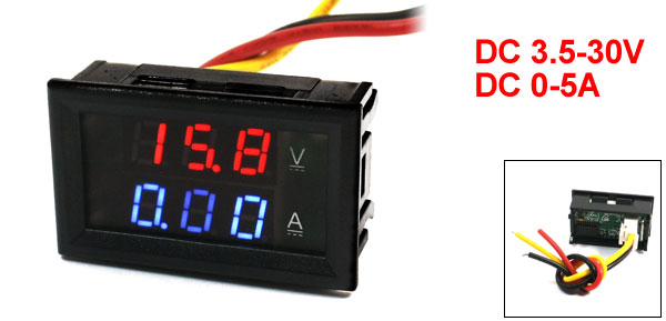 DC 3.5-30V 5A Red Blue 7-Segment 3-Bit LED Dual Display Ammeter Voltmeter
