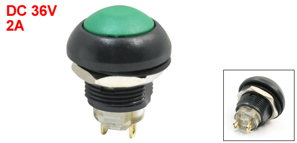 Item Name Push Button Switch Action Type Momentary Type Contact 1NO Switch Rating DC 36V, 2A Pin Number 2 Thread Diameter 12mm/0.47" Total Size 20 x 20mm/0.8" x 0.8" (L*Max.W) Material Plastic, Electric Parts Housing Color Green, Black Net Weight 4g Package Content 1 x Push Button Switch - Reviews