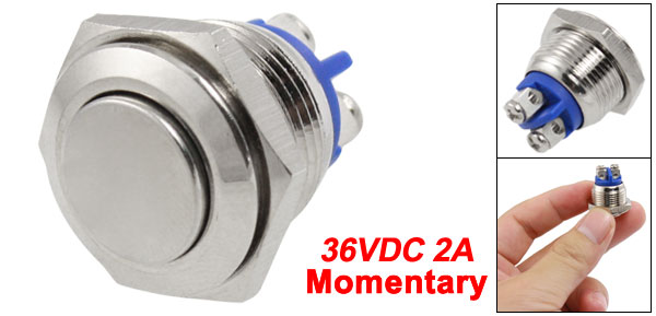 Item Name Metal Push Button Switch Operation Type Momentary Type Head Shape High Flat Contact 1NO Switch Rating 36VDC, 2A Terminal Number 2 Buttom Diameter 11mm/0.4'' Thread Diameter 16mm/0.6'' Total Size 22 x 19mm/0.86'' x 0.75'' (L*Max.W) Material Metal, Electric Parts Housing Color Silver Tone, Blue Net Weight 14g Package Content 1 x Metal Push Button Switch - Reviews