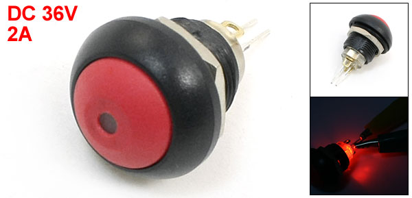 Item Name Push Button Switch Action Type Momentary Type Contact 1NO Switch Rating DC 36V, 2A Light Color Red Pin Number 4 Thread Diameter 12mm/0.47" Total Size 20 x 20mm/0.8" x 0.8" (L*Max.W) Material Plastic, Electric Parts Housing Color Red, Black Net Weight 4g Package Content 1 x Push Button Switch - Reviews