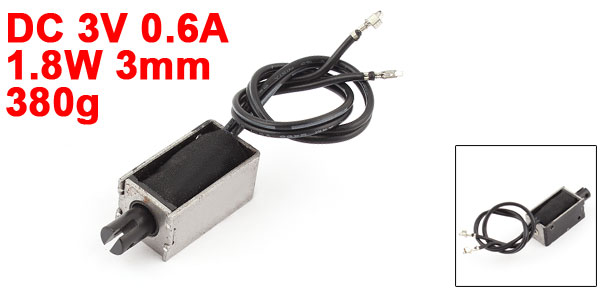 DC 3V 0.6A 1.8W 3mm 380g Push Type Open Frame Solenoid Electromagnet Actuator