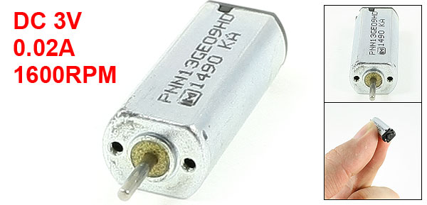Product Name DC Motor Rated Voltage DC 3V Rated Current 0.02A Rated Speed 1600RPM Body Size 8 X 6 21mm / 0.3" x 0.24" x 0.8"(L*W*T) Shaft Size 1 x 5mm/ 0.04" x 0.2"(D*L) Main Color Silver Tone Material Metal Net Weight 4g Package 1 x DC Motor - Reviews