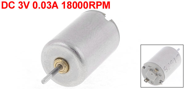 Product Name 1015 DC Motor Rated Voltage DC 3V Rated Current 30mA Speed 18000RPM Shaft Diameter 1mm / 0.04" Shaft Length 6mm / 0.24" Body Diameter 10mm / 0.4" Total Length 23mm / 0.9" Main Color Silver Tone Material Metal Weight 7g Package 1 x 1015 DC Motor - Reviews