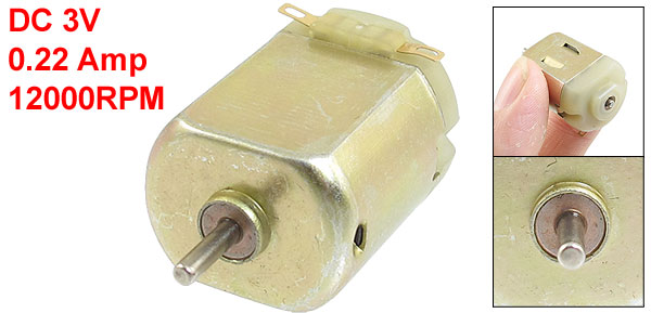 DetailsDC 3V 0.22A 12000RPM Rotary Speed 2 Pin Electric Magnetic Gear Motor  Product Name DC Motor Rated Voltage DC 3V Rated Current 0.22A Speed 12000RPM Shaft Diameter 2mm/ 0.079" Shaft Length 7mm/ 0.28" Body Size 20 x 15mm/ 0.79" x 0.59" (L*W) Total Length 37mm/ 1.5" Material Metal Weight 18g Package 1 x DC Motor