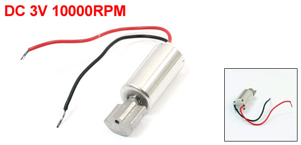 DetailsDC 3V 10000RPM Mini Coreless Vibration Motor for Model Aircraft Toy  Product Name Coreless Motor Rated Voltage DC 3V Speed 10000RPM Body Size 6 x 12 mm / 0.24" x 0.47" (D*H) Wire Length 30mm /1.2" Total Length 18mm/ 0.47" Main Color Silver Tone Material Metal Weight 4g Package 1 x DC Coreless Motor