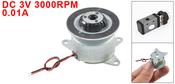 Product Name DVD Motor Rated Voltage DC 3V Rated Current 0.01A Speed 3000RPM Body Size 25 x 13 mm / 1" x 0.5" (D*H) Cable Length 5 cm / 2" Mounting Hole Dia. 2.3 mm / 0.09" Total Height 24 mm / 0.94" Main Color Silver Tone, Black Main Material Metal, Plastic Weight 26g Package 1 x DVD Motor - Reviews