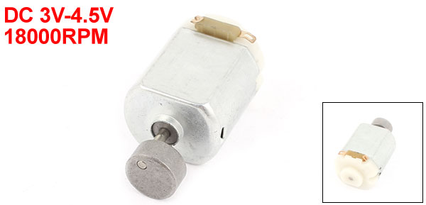 Main Color Silver Tone Brand DMiotech Net Weight 17g Rated Voltage DC 3-4.5V Total Length 38mm/1.5" Country of Manufacture CHINA Package Content 1 x DC Vibration Motor Vibration Size 10 x 5mm/0.4" x 0.2"(D*T) Material Metal Speed(no load) 18000RPM Body Size 27x20x15mm/1.1" x 0.8" x 0.6"(L*W*H) - Reviews