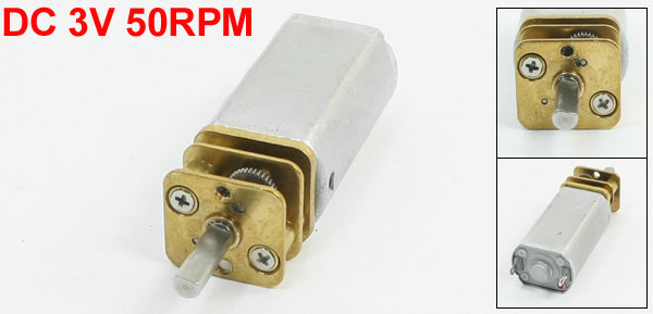 Product Name DC Geared Motor Model 16GA050-245 Rated Voltage DC 3V Output Speed 50RPM Shaft Size 10 x 3mm/ 0.4" x 0.12"(L*D) Motor Part Size 27 x 15 x 12mm/ 1.1" x 0.59" x 0.47"(L*W*T) Total Length(Approx.) 50mm/ 2" Material Metal, Electronic Parts Color Gray, Gold Tone Weight 23g Package Content 1 x DC Geared Motor - Reviews