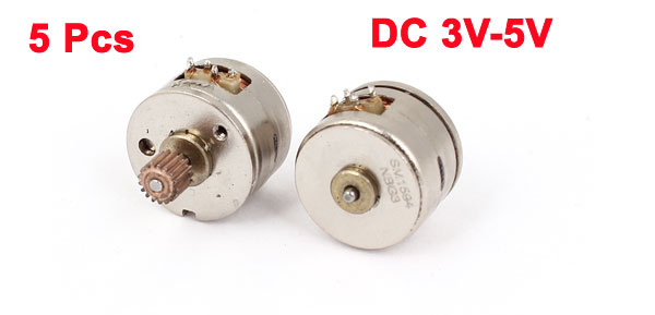 Main Color Silver Tone, Brown Country of Manufacture CHINA Model 2 Phase 4 Wire Motor Height 11.6mm/ 0.45" Total Height 19mm/ 0.75" Rotating Speed 1000RPM Gear Spec. 17T, 4.7mm Dia, 0.25Modulus, 3.5mm Thick Material Metal Step Angle 18 Degree 2 Threaded Holes on Top 1.5mm/ 0.06"(Dia.) Net Weight 48g Package Content 5 x Stepper Motor Resistance 10 Ohm Voltage DC 3V-5V Motor Diameter 15mm/ 0.6" - Reviews