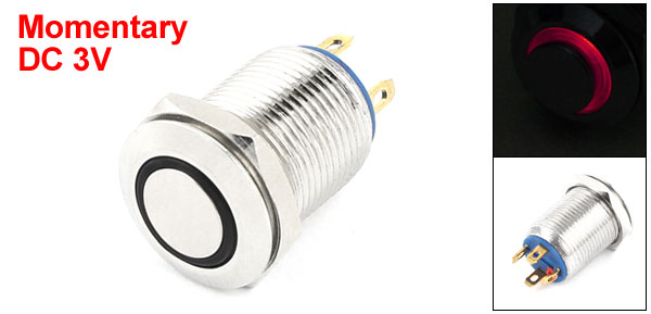 Item Name Push Button Switch Action Type Momentary Type LED Type Angel Eye LED Head Shape Flat Head Contact SPST Switch Rating AC 250V, 2A Lamp Voltage DC 3V LED Color Red Pin Number 4 Thread Diameter 12mm/0.47" Total Size 23 x 14mm/0.9" x 0.55"(L*Max.W) Material Metal, Plastic, Electric Parts Housing Color Silver Tone Net Weight 7g Package Content 1 x Push Button Switch - Reviews